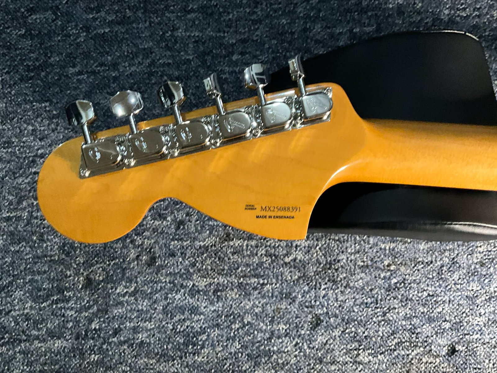 La Vintera® II ’70s Jaguar® cuenta con un cuerpo de aliso y un mástil de arce para ofrecer el sonido clásico de Fender, lleno de pegada y claridad. El mástil en forma de “C” de finales de los 70 ofrece un agarre cómodo y familiar que se siente perfecto en la mano, mientras que el diapasón de radio de 7.25″ con trastes altos vintage proporciona una comodidad vintage con amplio espacio para bends fuertes y un vibrato expresivo. Los bloques y ribetes negros le aportan una sensación y un aspecto premium con el distintivo estilo de los 70. Bajo el capó, encontrarás un par de pastillas single-coil de estilo vintage de principios de los 70 que ofrecen todo el sonido dulce, brillante, cálido y amaderado que hizo famosa a Fender. El trémolo flotante de estilo vintage te permite sumergirte y gemir con libertad, mientras que los clavijeros de estilo vintage proporcionan un aspecto clásico con una relación de transmisión más fina y una mayor estabilidad de afinación para completar el conjunto.