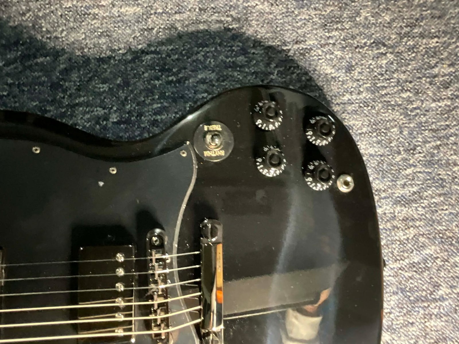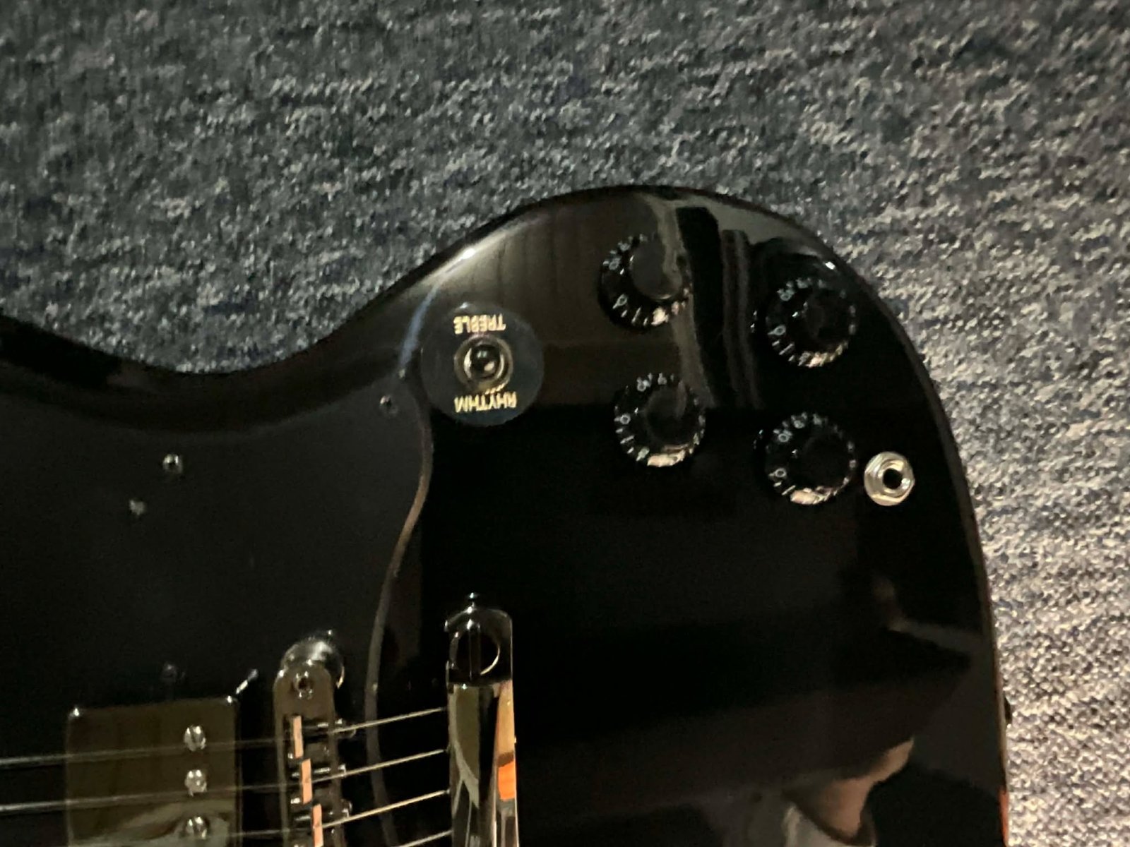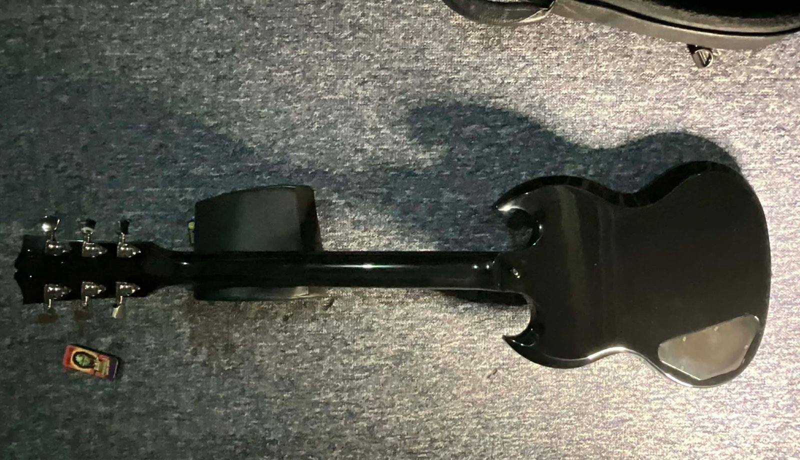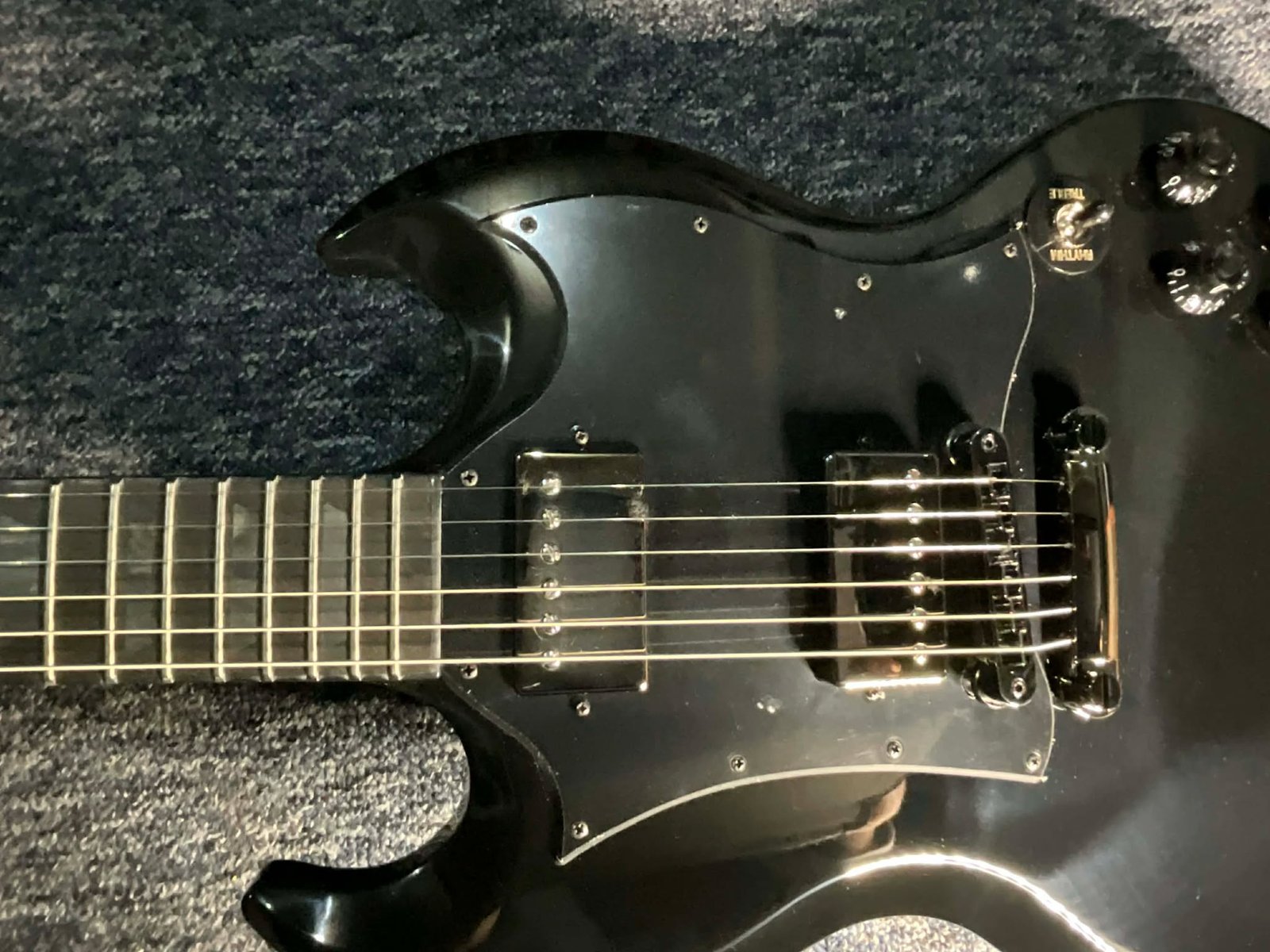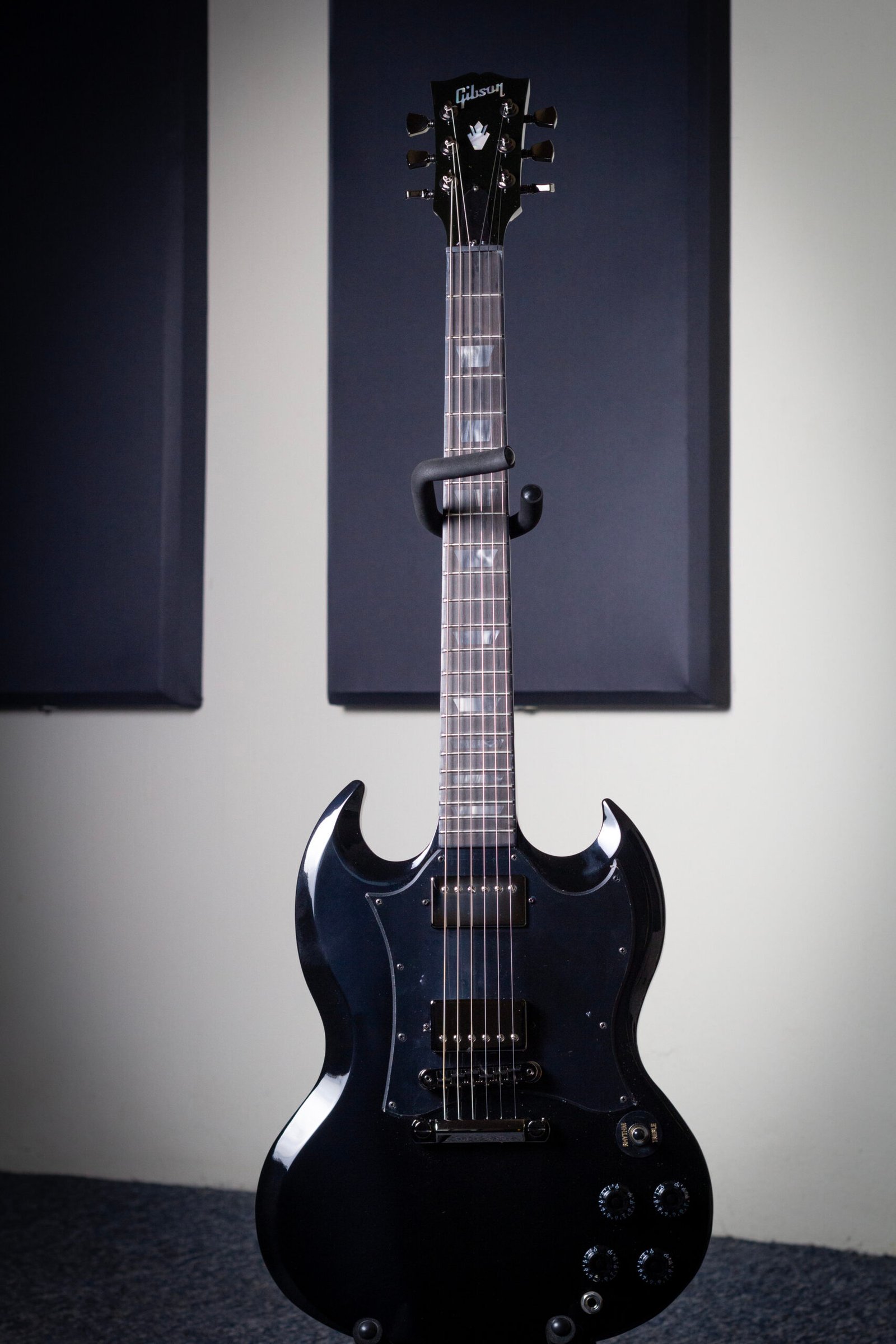 Lo que distingue visualmente a esta SG Standard Dark, exclusiva de Guitar Center, es su moderno y decididamente opaco tratamiento oscurecido. Desde el puente y cordal Nashville Tune-O-Matic cromados en negro hasta los clavijeros Grover Rotomatic con botones de riñón a juego, cada pieza de hardware contribuye a la estética agresiva de la guitarra. Los controles negros tipo sombrero de copa evocan el estilo clásico, a la vez que se alinean con la apariencia general. El diapasón de ébano con bordes presenta elegantes incrustaciones trapezoidales negras que brillan sutilmente bajo las luces del escenario. Es una versión oscura y dramática de un diseño atemporal: audaz sin ser ostentoso, y lista para destacar en cualquier escenario.